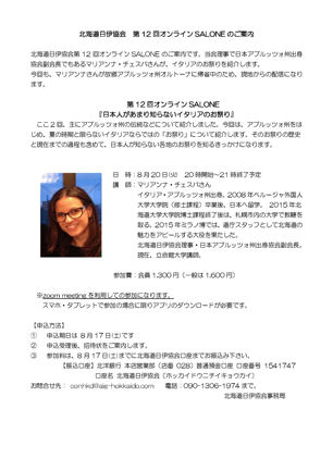 申し込み・問い合わせは、北海道日伊協会事務局/Eメール:conhkd@aig-hokkaido.com へ。